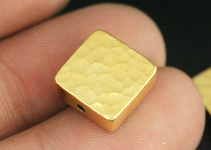 KG-569 Thai karen hill tribe silver 2 gold vermeil hammered cylinder square shaped bead