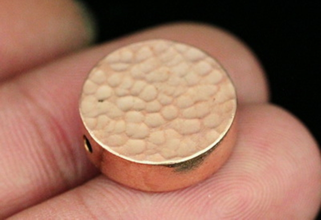 KZ-219 Thai karen hill tribe silver 2 rose gold vermeil hammered cylinder round shaped bead