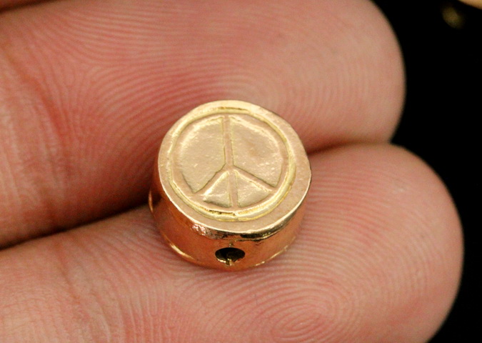 KZ-225 Thai karen hill tribe handmade silver 2 rose gold vermeil peace sign cylinder shaped bead