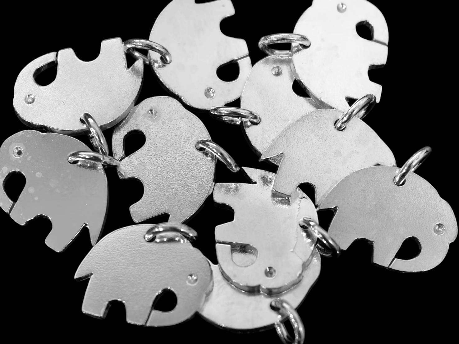 3KH-135 thai karen hill tribe handemade silver white 4 plain diecut small elephant shape charm