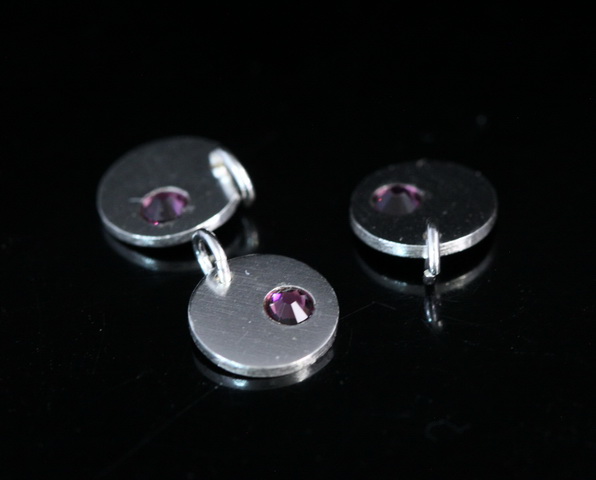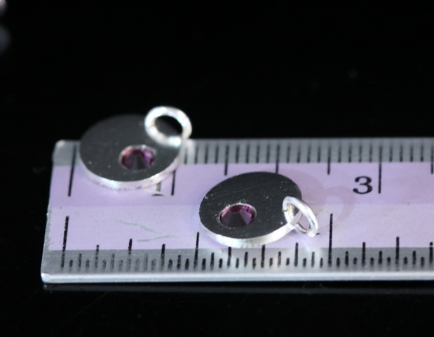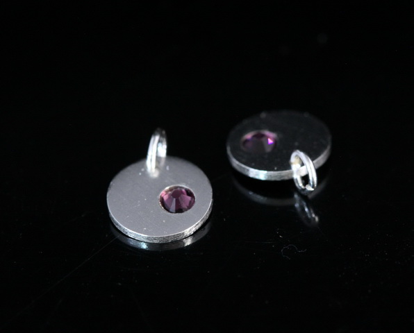 8KH-115 thai karen hill tribe silver 1 round disc charm open jump ring with swarovski crystal birthstone(Feb:Amethyst)