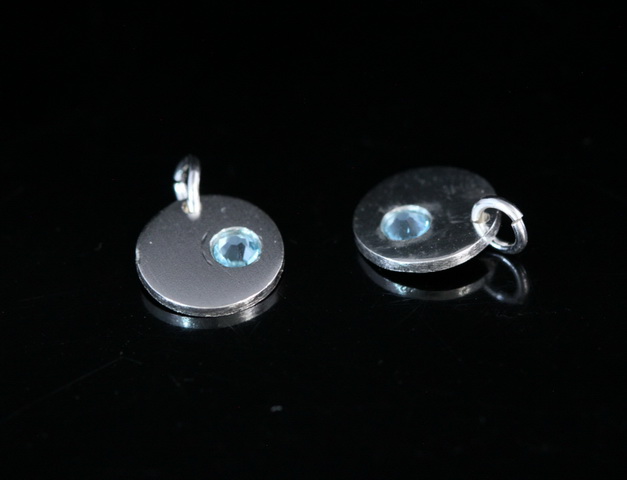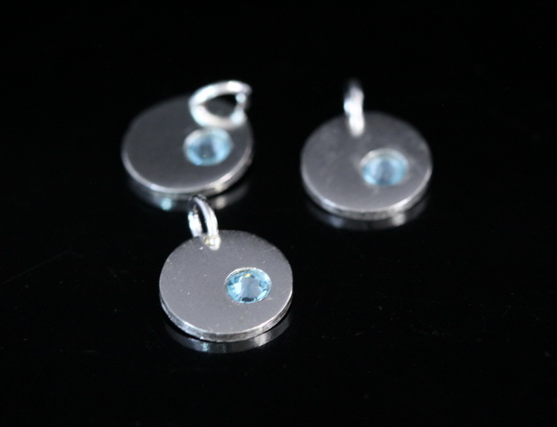 8KH-116 thai karen hill tribe silver 1 round disc charm open jump ring with swarovski crystal birthstone(Mar:Aquamarine)