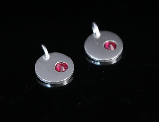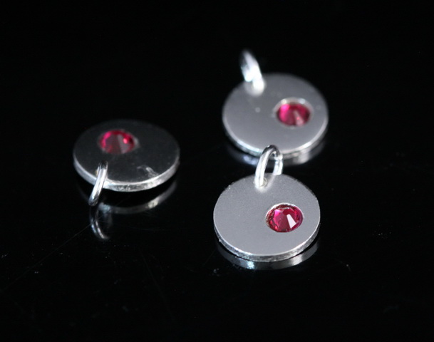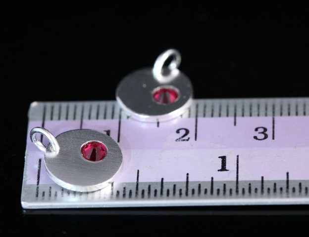 8KH-120 thai karen hill tribe silver 1 round disc charm open jump ring with swarovski crystal birthstone(Jul:Ruby)