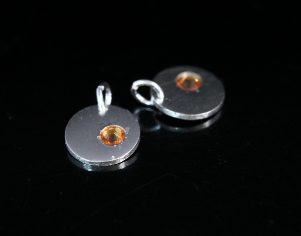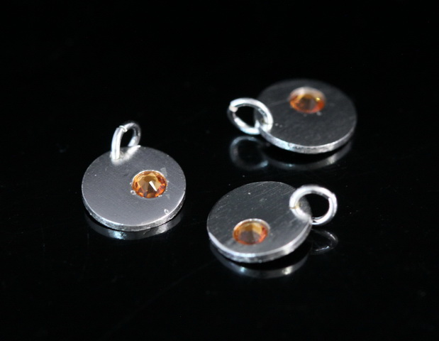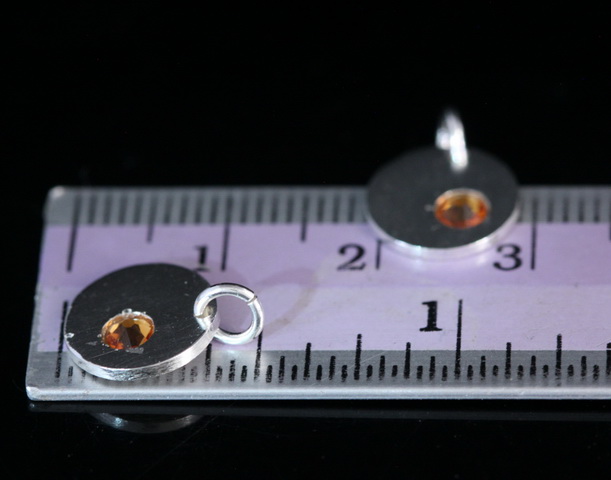 8KH-124 thai karen hill tribe silver 1 round disc charm open jump ring with swarovski crystal birthstone(Nov:Topaz)
