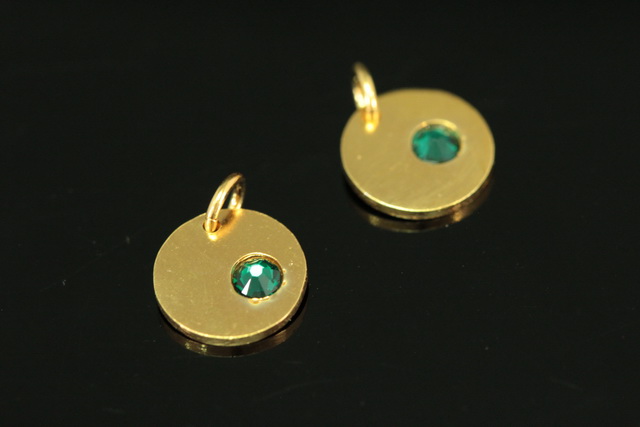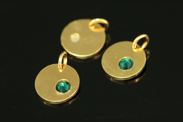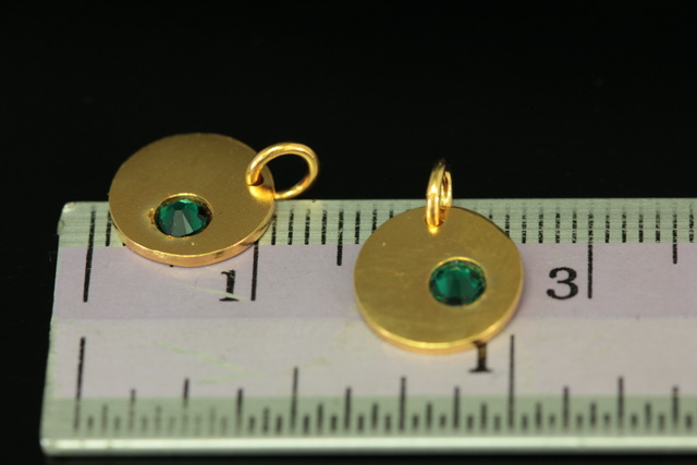 KG-583 thai karen hill tribe silver 1 gold vermeil round disc charm open jump ring with swarovski crystal birthstone(May:Emerald)