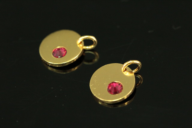 KG-585 thai karen hill tribe silver 1 gold vermeil round disc charm open jump ring with swarovski crystal birthstone(Jul:Ruby)