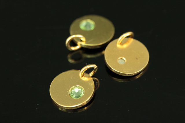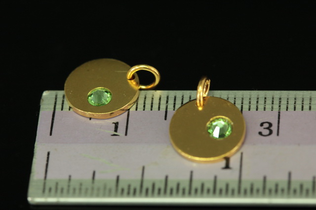 KG-586 thai karen hill tribe silver 1 gold vermeil round disc charm open jump ring with swarovski crystal birthstone(Aug:Peridot)