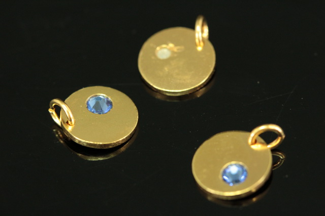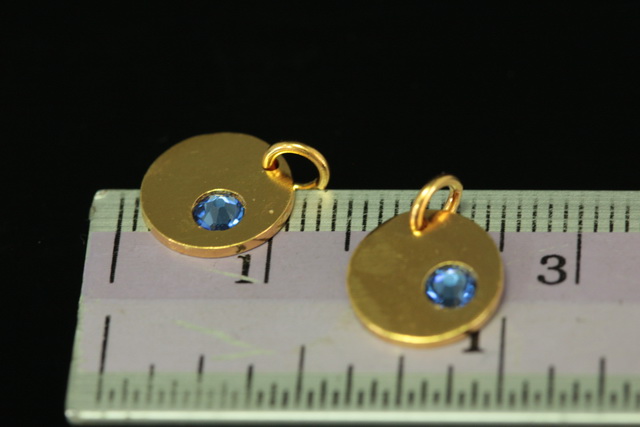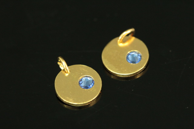 KG-587 thai karen hill tribe silver 1 gold vermeil round disc charm open jump ring with swarovski crystal birthstone(Sep:Sapphire)
