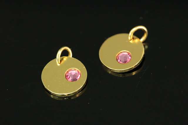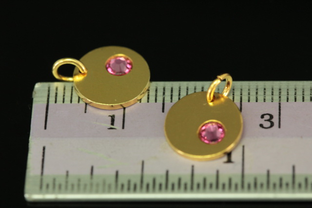 KG-588 thai karen hill tribe silver 1 gold vermeil round disc charm open jump ring with swarovski crystal birthstone(Oct:Rose)