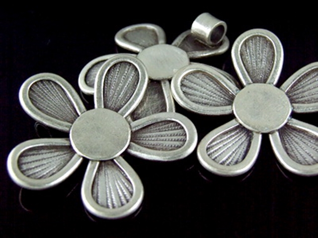 4KH-049 Thai karen hill tribe handmade silver 1 large wild flower charm