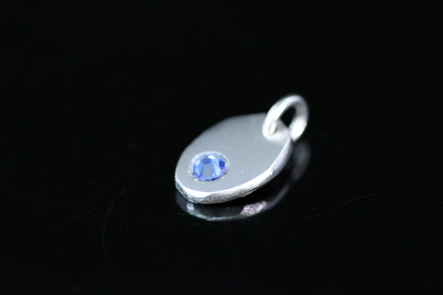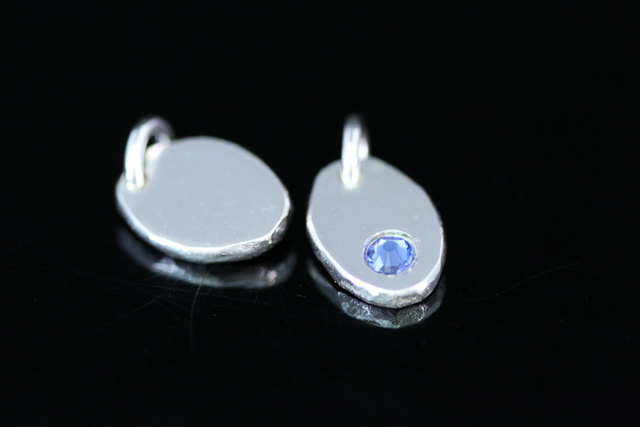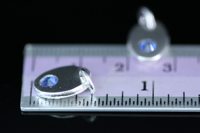 8KH-134 thai karen hill tribe silver 1 pebble charm open jump ring with swarovski crystal birthstone(Sep:Sapphire)