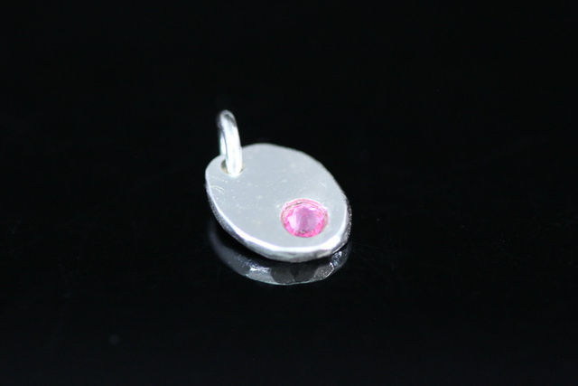 8KH-135 thai karen hill tribe silver 1 pebble charm open jump ring with swarovski crystal birthstone(Oct:Rose)