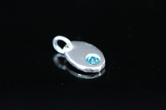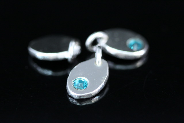 8KH-137 thai karen hill tribe silver 1 pebble charm open jump ring with swarovski crystal birthstone(Dec:Blue Zircon)