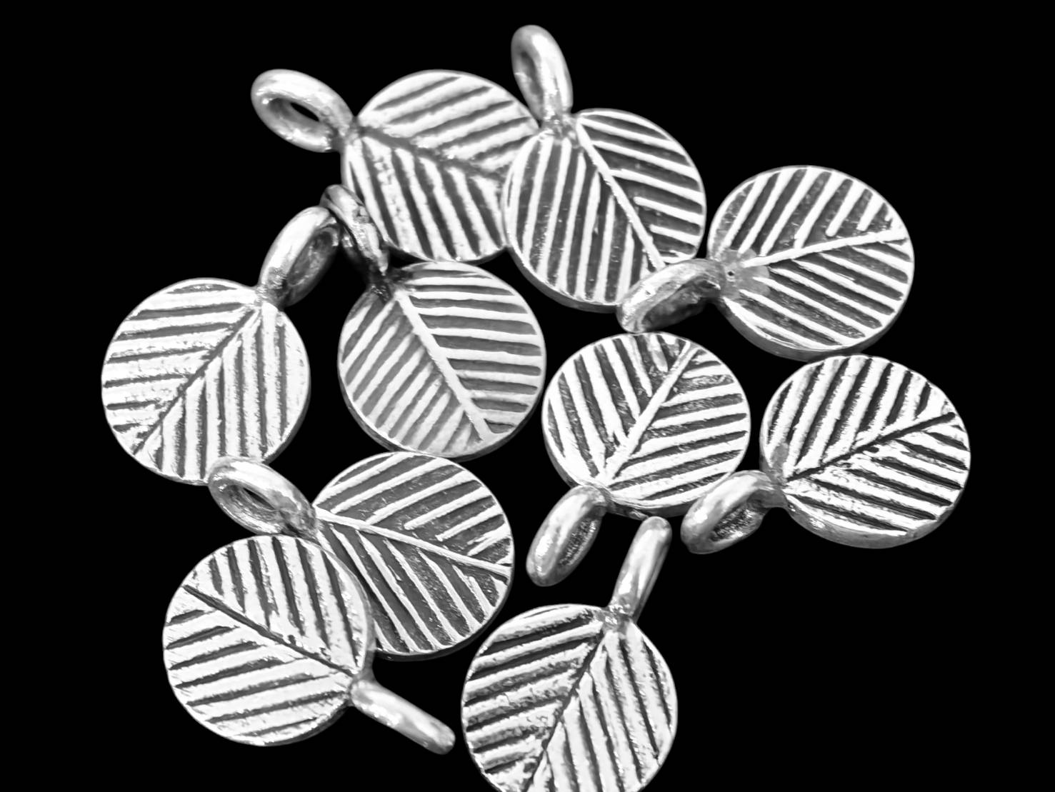 KA-005 thai karen hill tribe handmade silver 4 black&white leaf charm