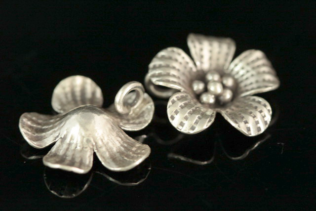 4KH-036 thai karen hill tribe silver 2 wild flower charm