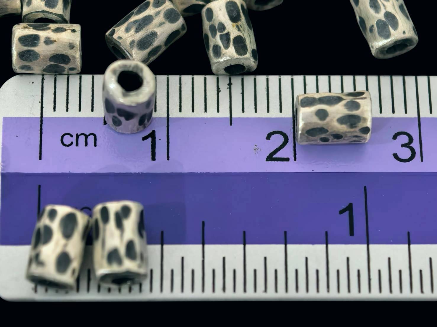 KI-001 thai karen hill tribes silver 10 black&white hammered tube bead