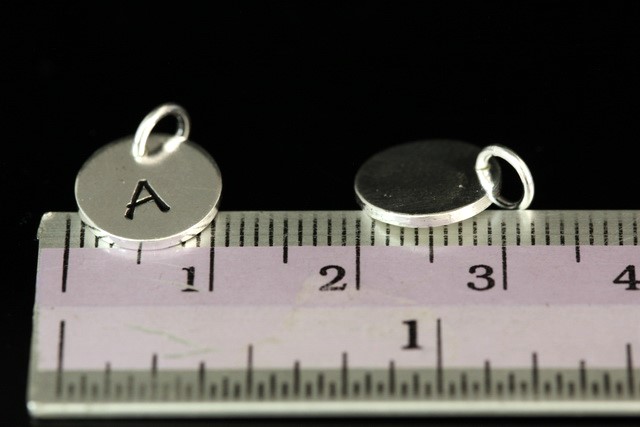 3KH-013 thai karen hill tribe silver 1 round disc initial stamp charm 10mm.