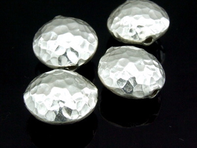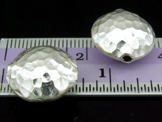 KV-006 Thai karen hill tribe handmade silver 2 hammered round puffy bead