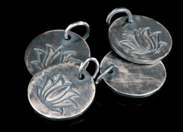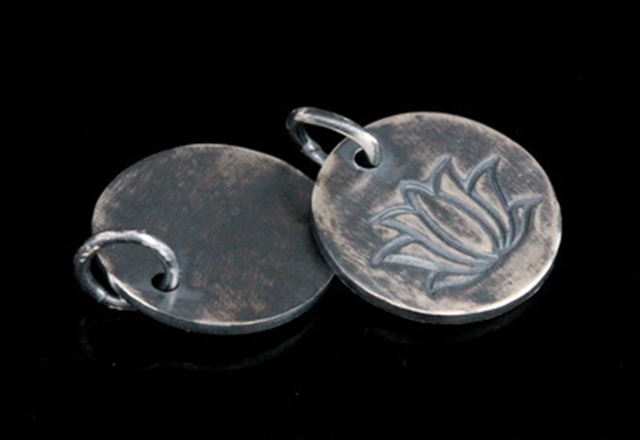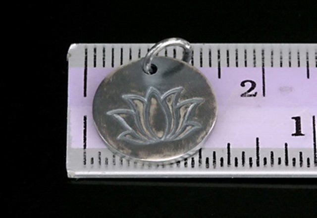 8KH-091 thai karen hil tribe handmade silver 2 black & white printed lotus disc charm 14.0 mm.
