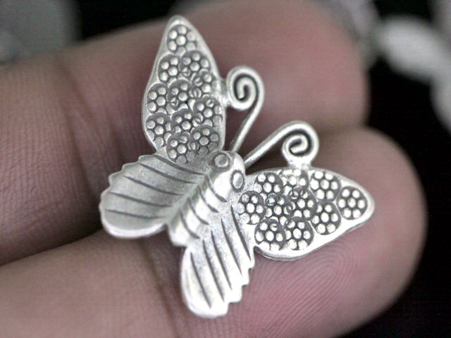 KA-007 thai karen hill tribe silver 2 butterfly pendants