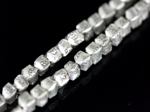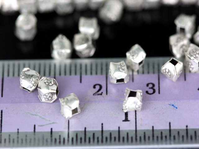 KI-055 thai karen hill tribe silver 40 fancy flower print bead