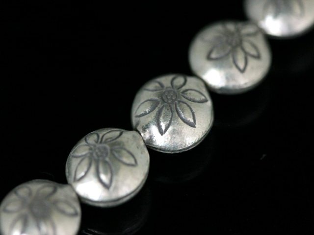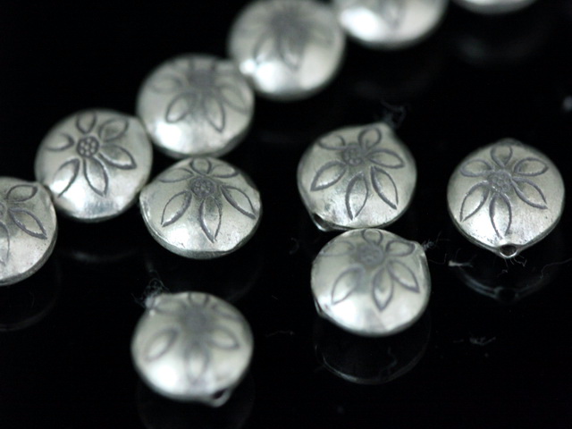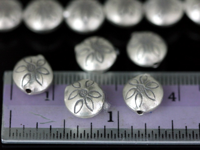 KT-005 thai karen hill tribe silver 4 flower print round puffy bead