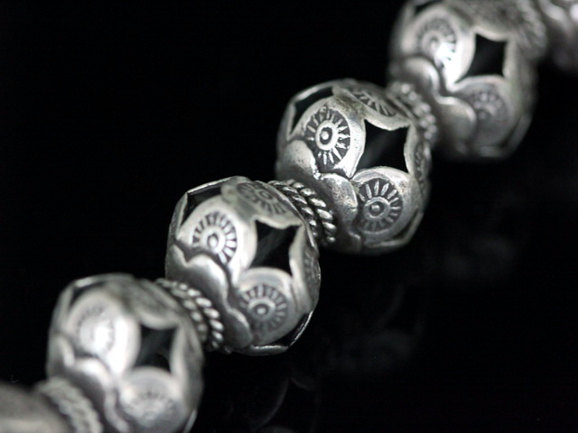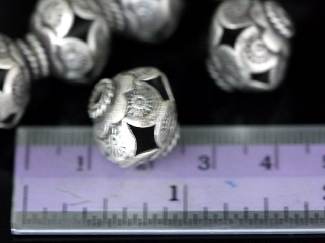 KO-007 thai karen hill tribe silver 2 fancy round bead