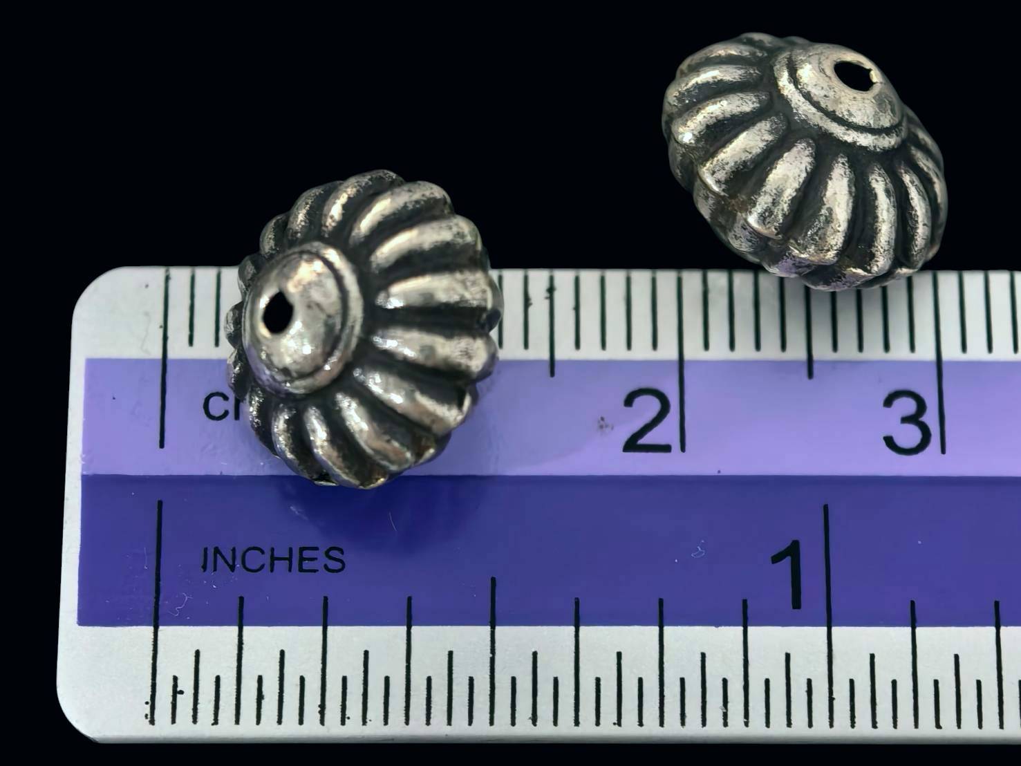 KO-008 thai karen hill tribe silver 2 fancy puffy bead