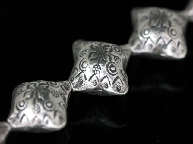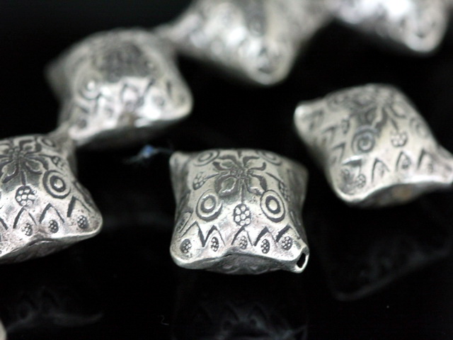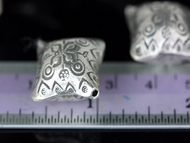 KV-017 thai karen hill tribe silver 1 fancy print square puffy bead