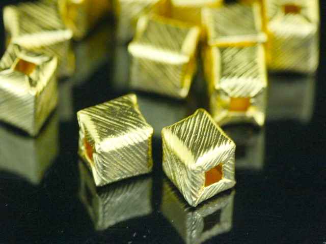 KG-263 Thai karen hill tribe silver 2 gold vermeil scratch cube bead