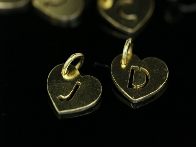 KG-627 Thai karen hill tribe silver 6 gold vermeil initial die cut heart charm