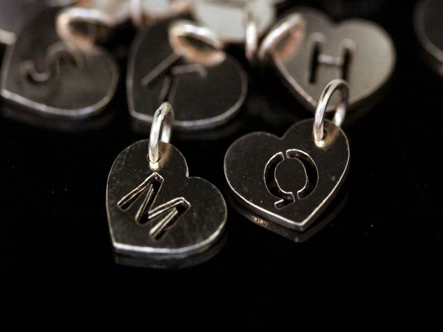 KZ-256 Thai karen hill tribe handmade silver 6 rose gold vermeil initial die cut heart charm