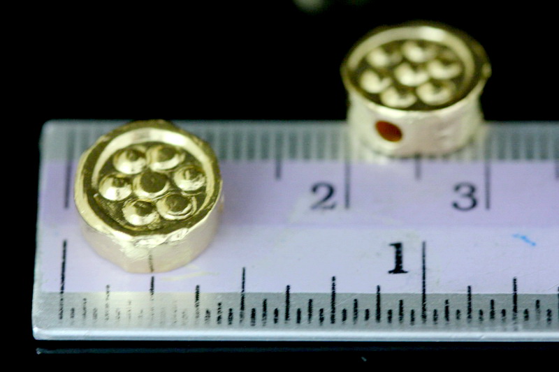 KG-623 Thai karen hill tribe silver 4 gold vermeil flower print cylinder round shaped bead
