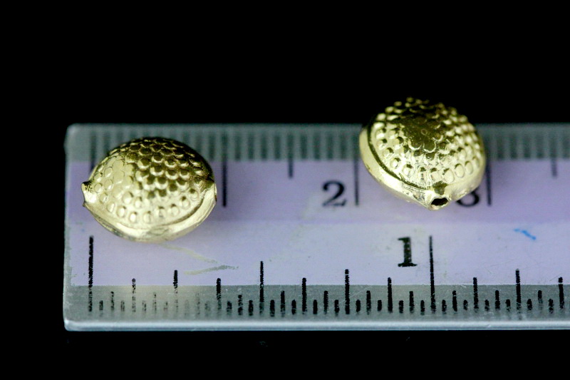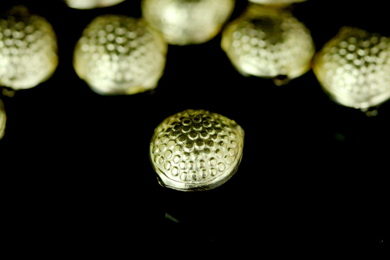 KG-632 Thai karen hill tribe silver 4 gold vermeil dot print round puffy bead