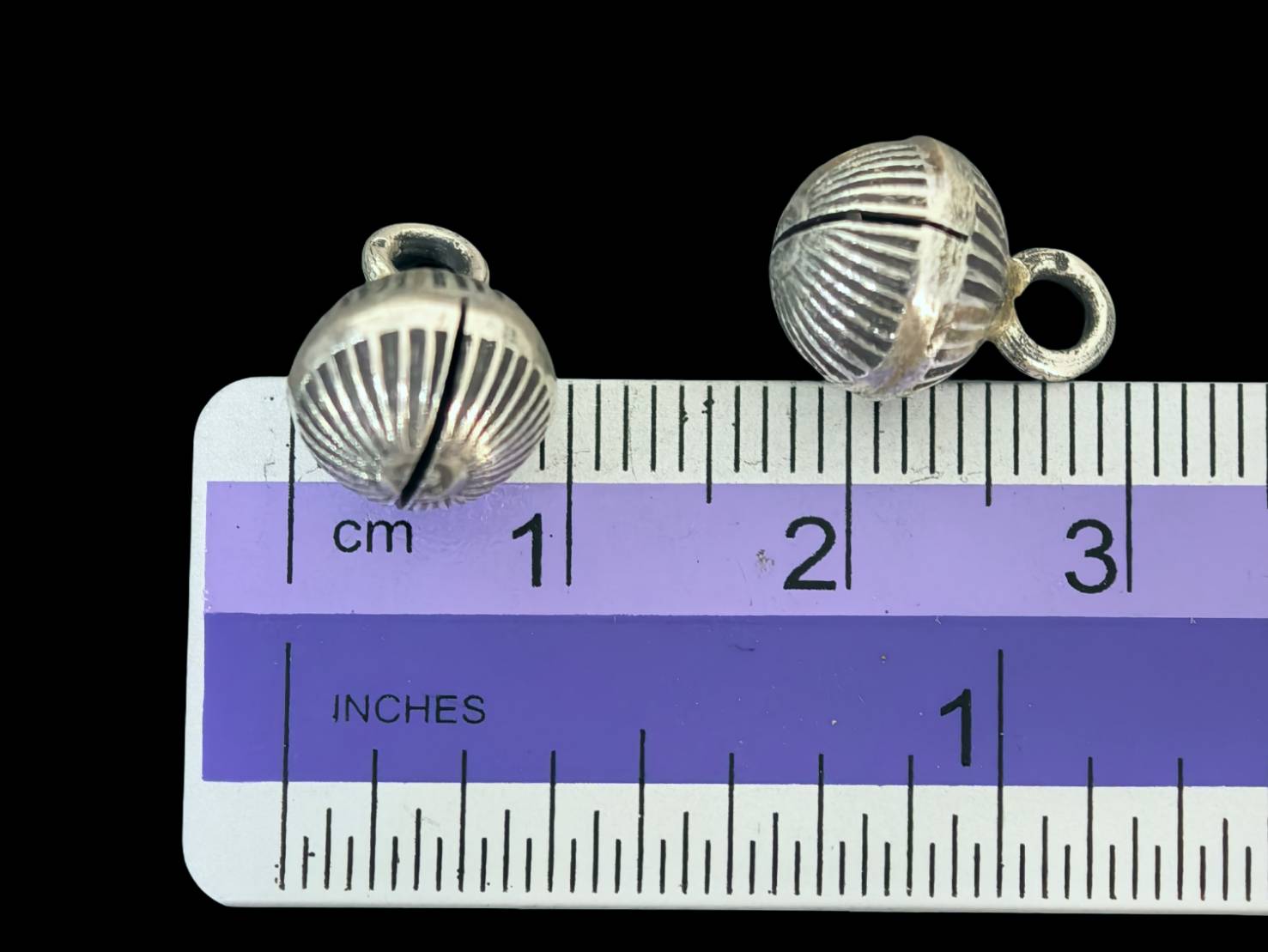 3KH-053 Thai karen hill tribe silver 4 fancy round ball bell charm