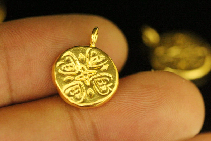 KG-613 24K gold vermeil thai karen hill silver 1 heart print round charm