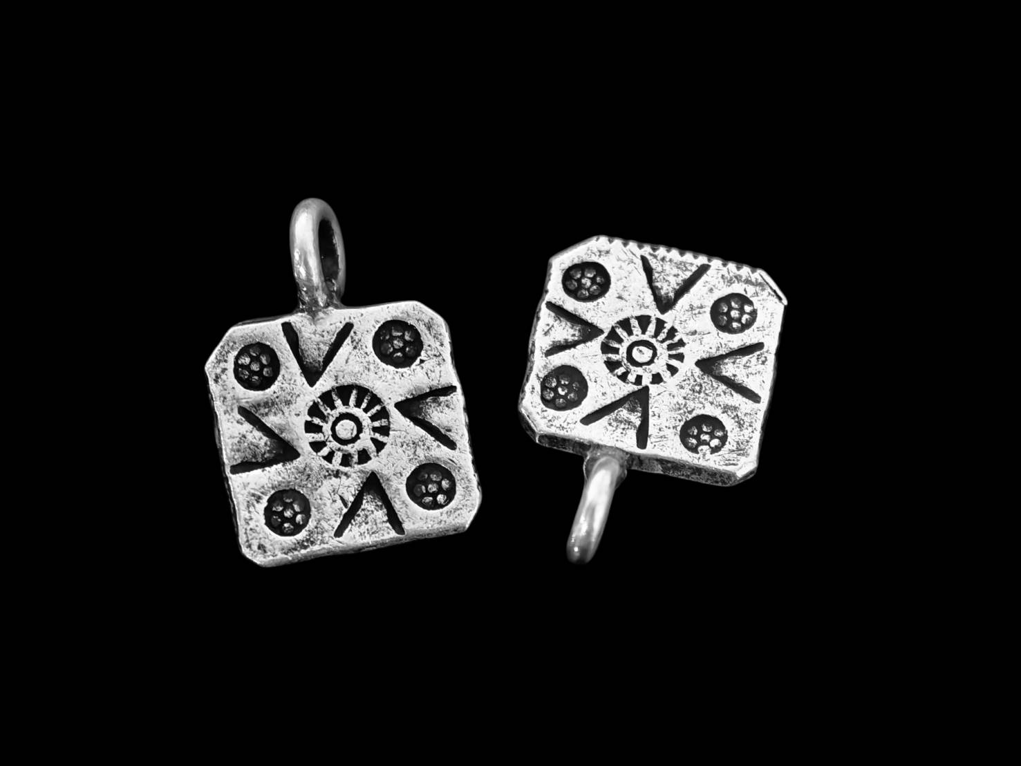 3KH-094 thai karen hill tribe handmade silver 4 flower print fancy square charm