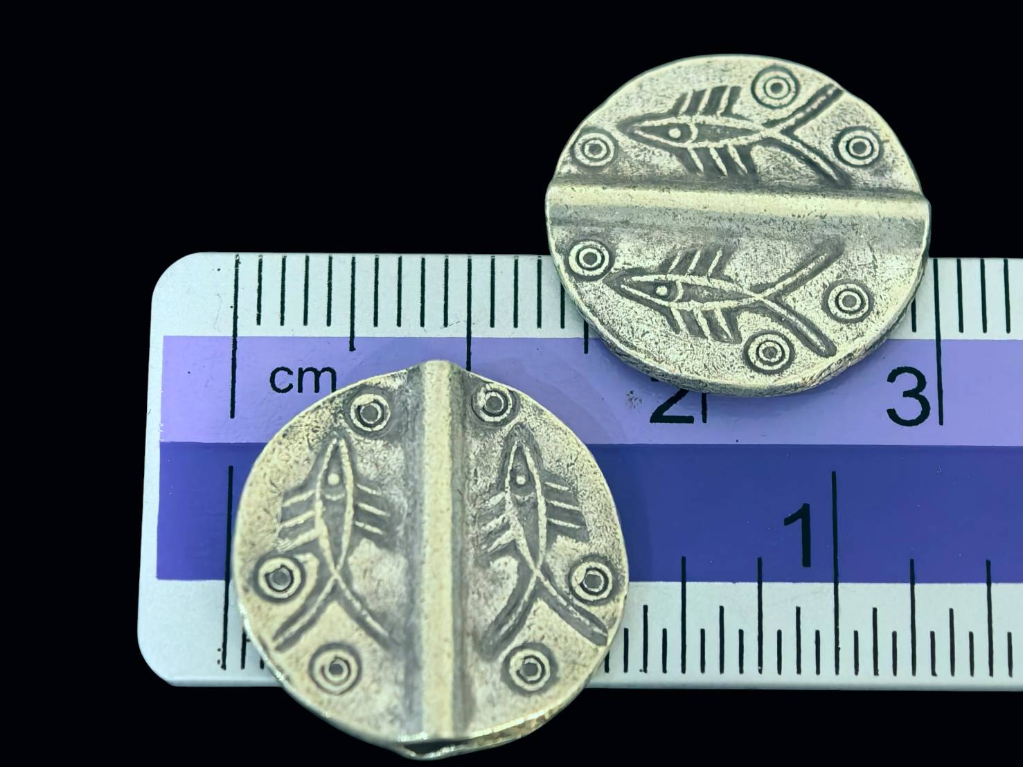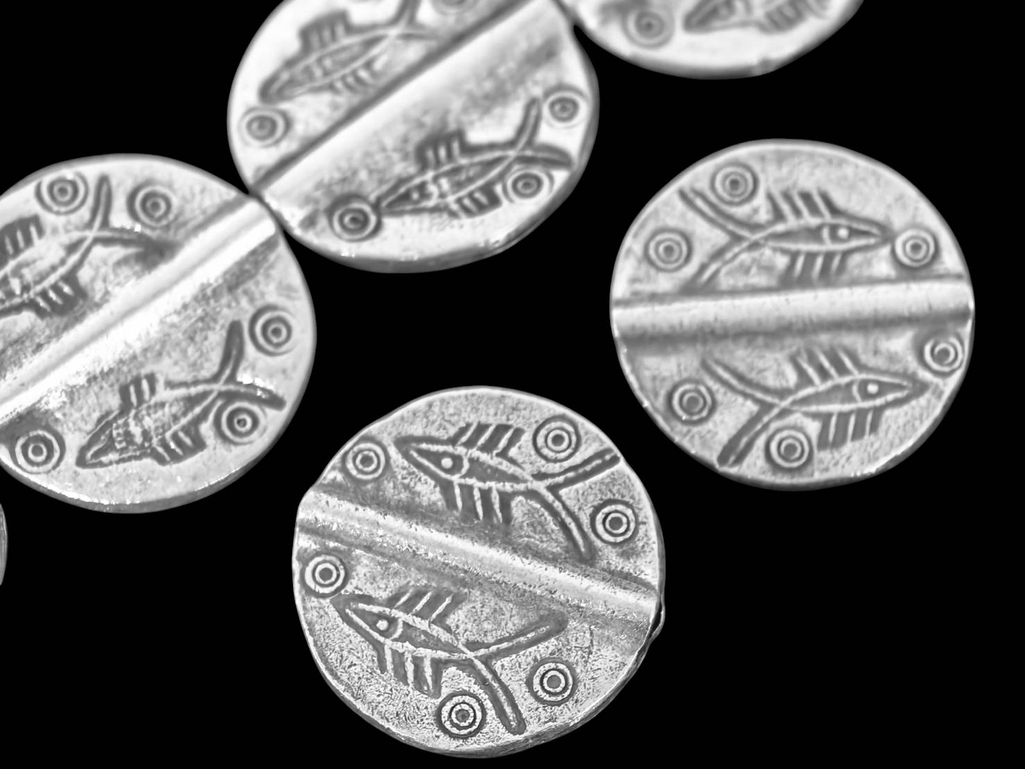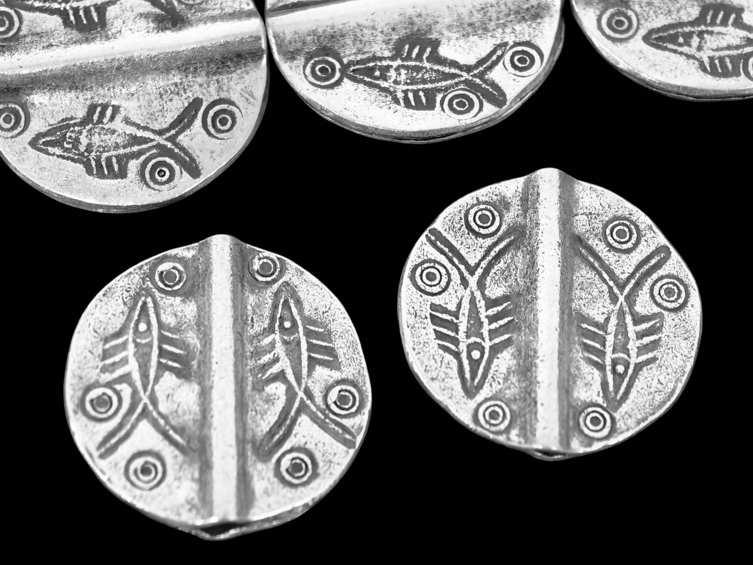 KB-007 Thai karen hill tribe silver 4 fish print fancy round bead