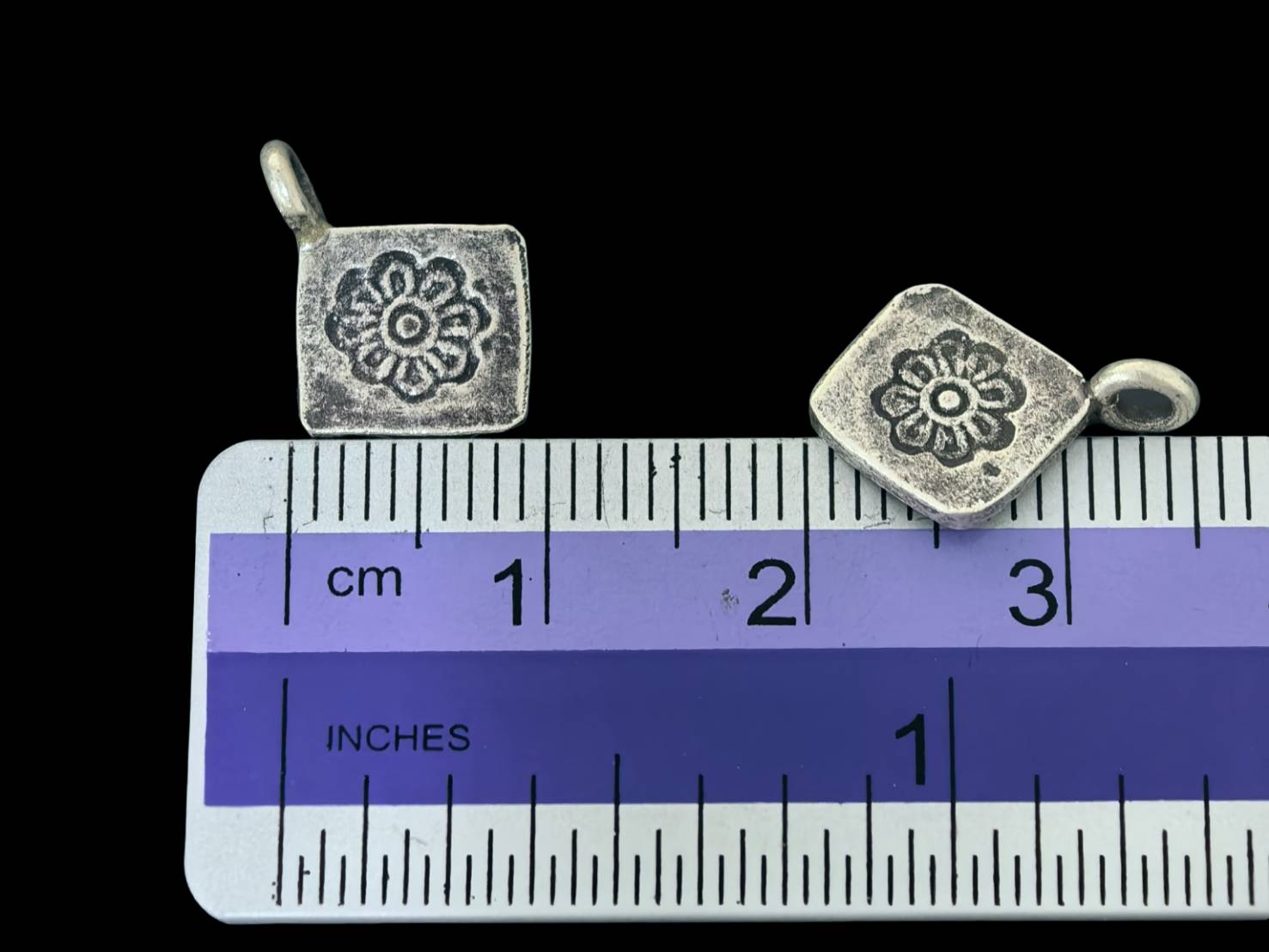 3KH-004 Thai karen hill tribe silver 4 flower print square charm
