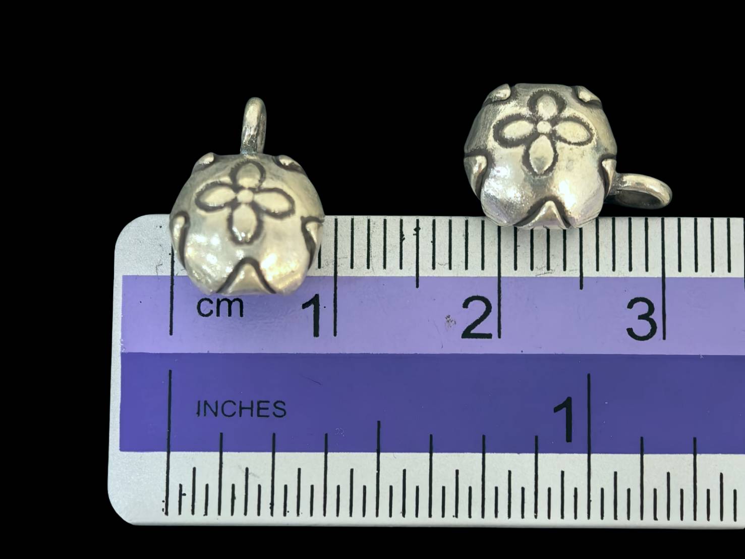 3KH-056 Thai karen hill tribe silver 4 round puffy charm with flower print