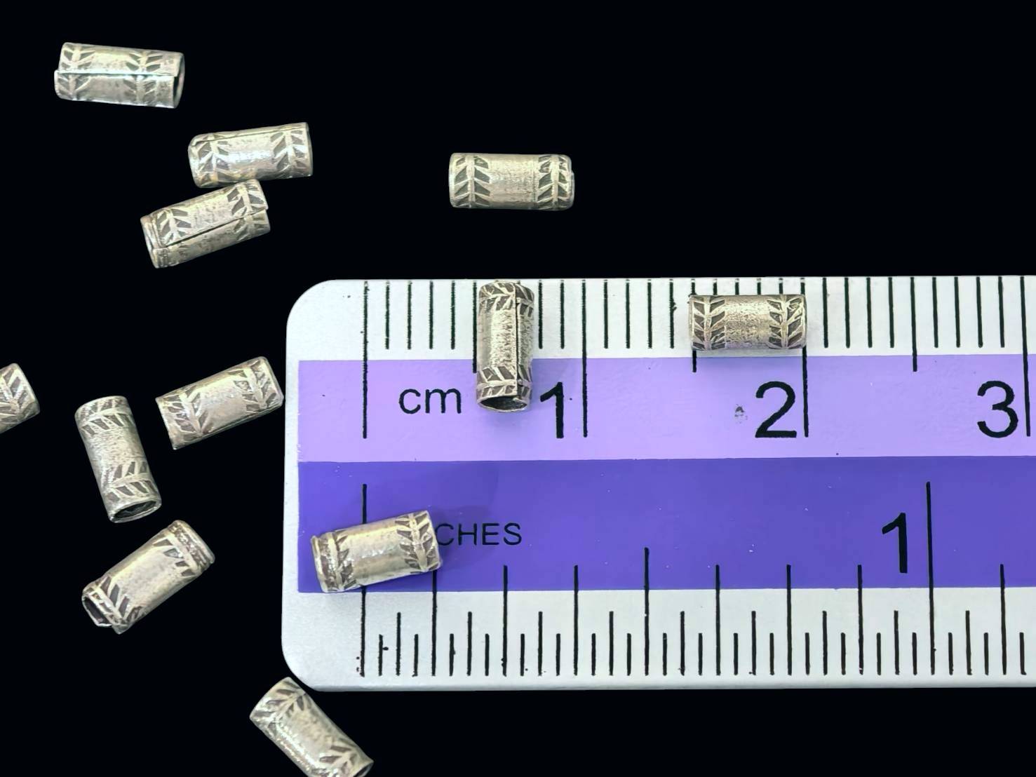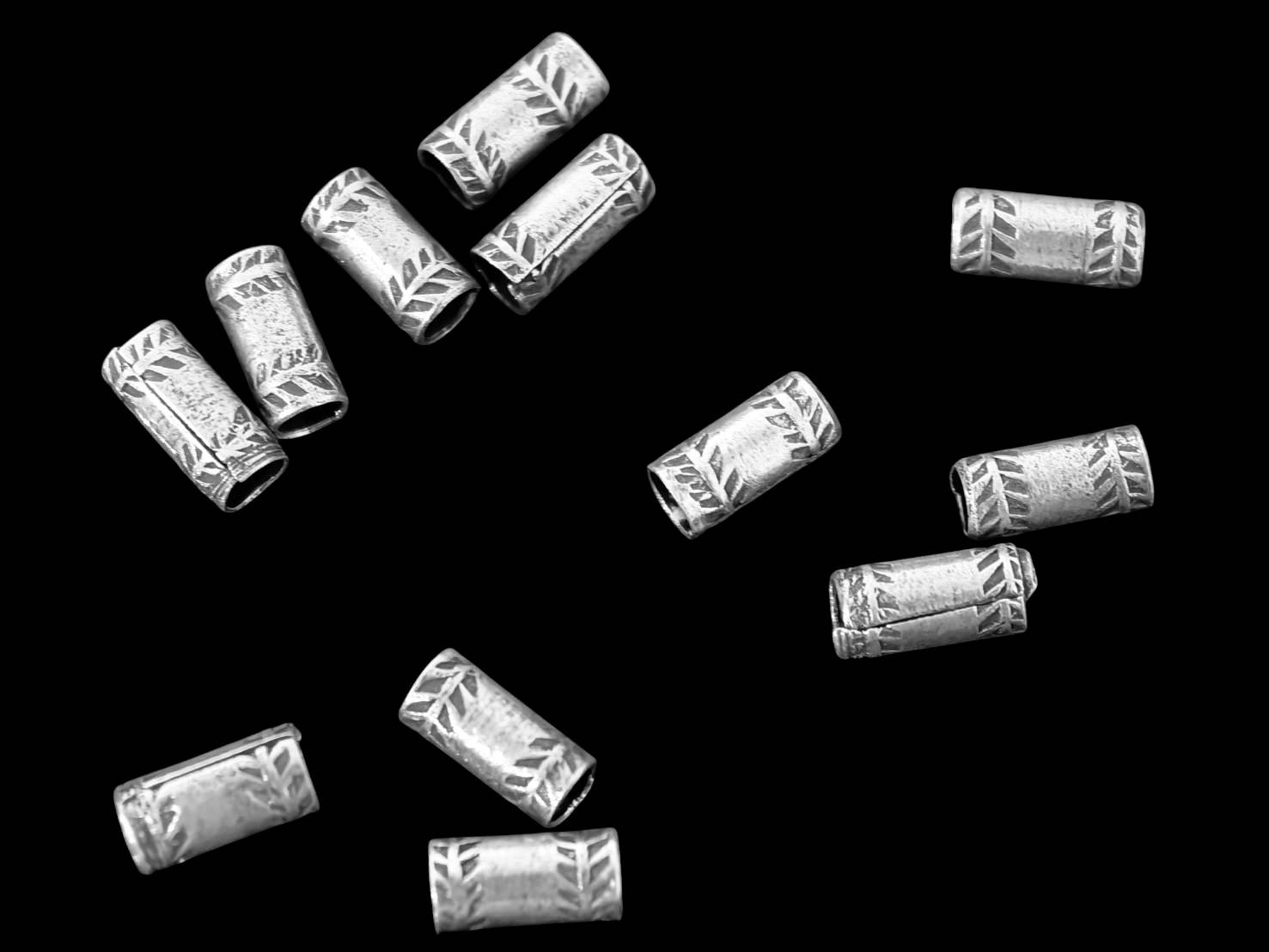 KD-012 thai karen hill tribe silver 40 fancy tube bead with leaf print