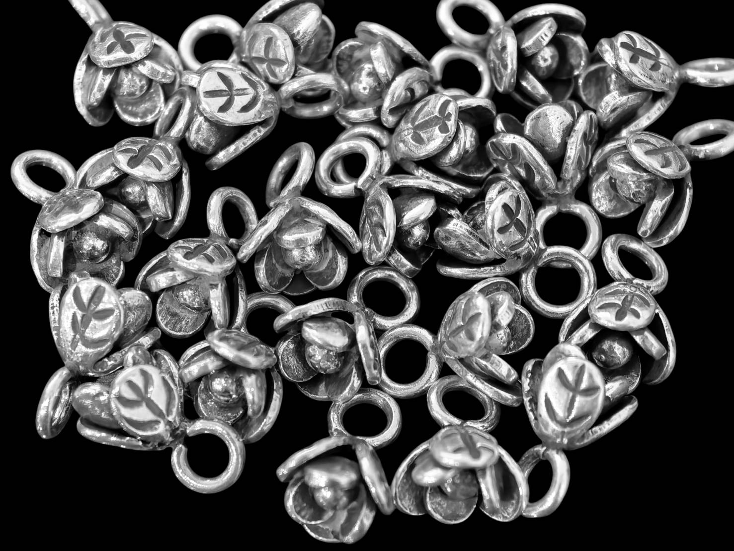 7KH-033 Thai karen hill tribe handmade silver 6 small flower charm