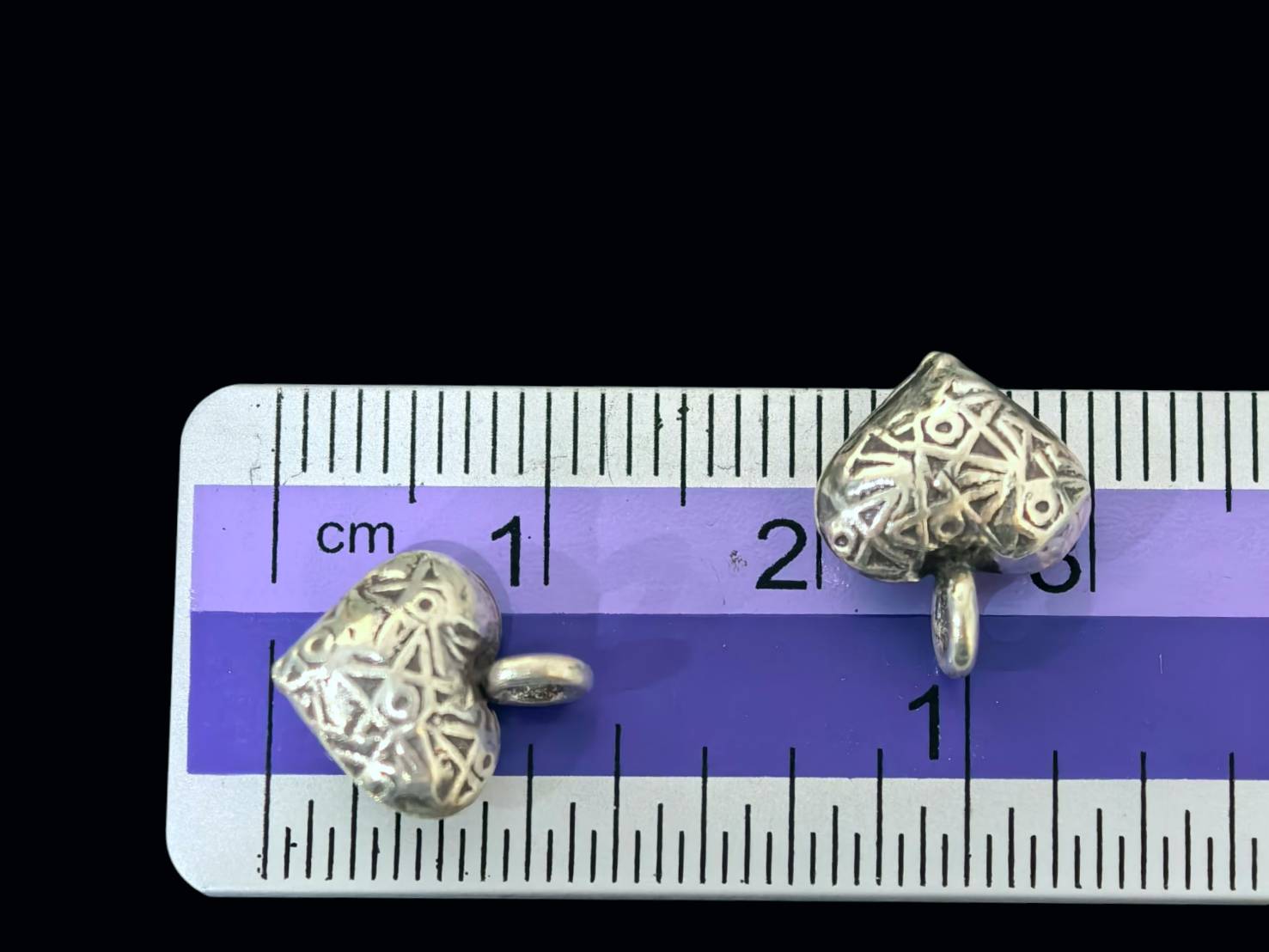 7KH-034 Thai karen hill tribe handmade silver 4 fancy heart puffy charm