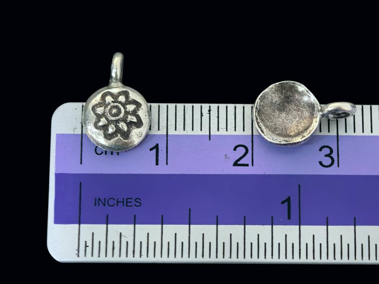 7KH-047 Thai karen hill tribe handmade silver 6 lotus print curve round charm