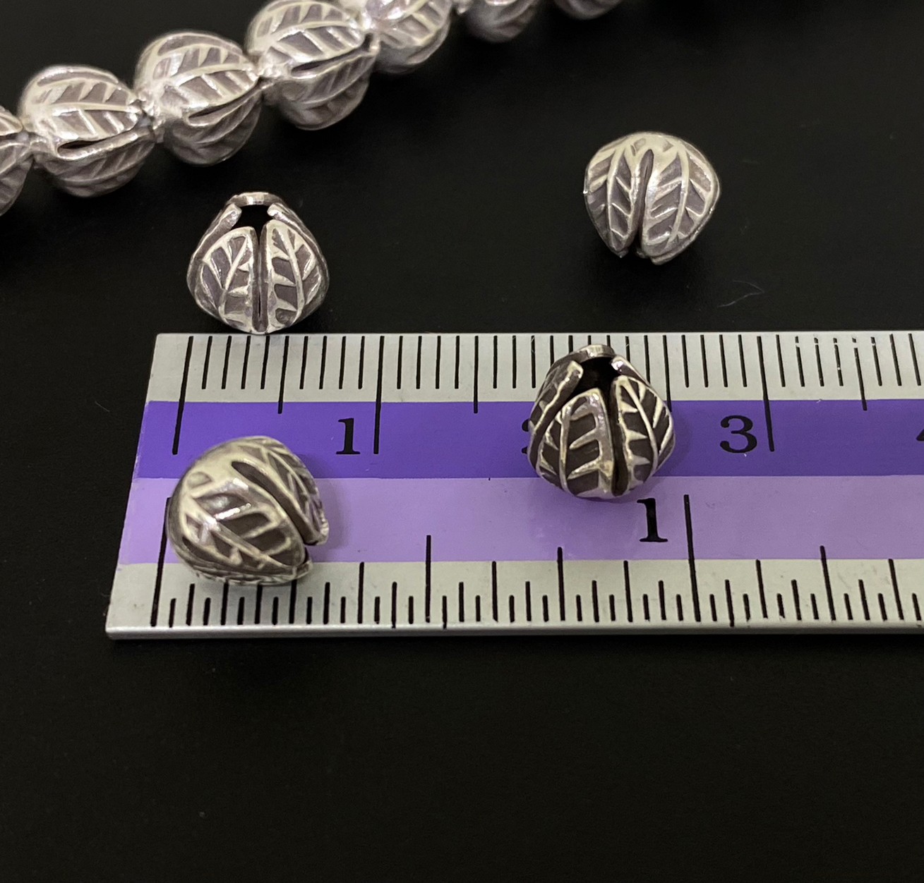 KE-001 Thai karen hill tribe silver 6 leaf print bead