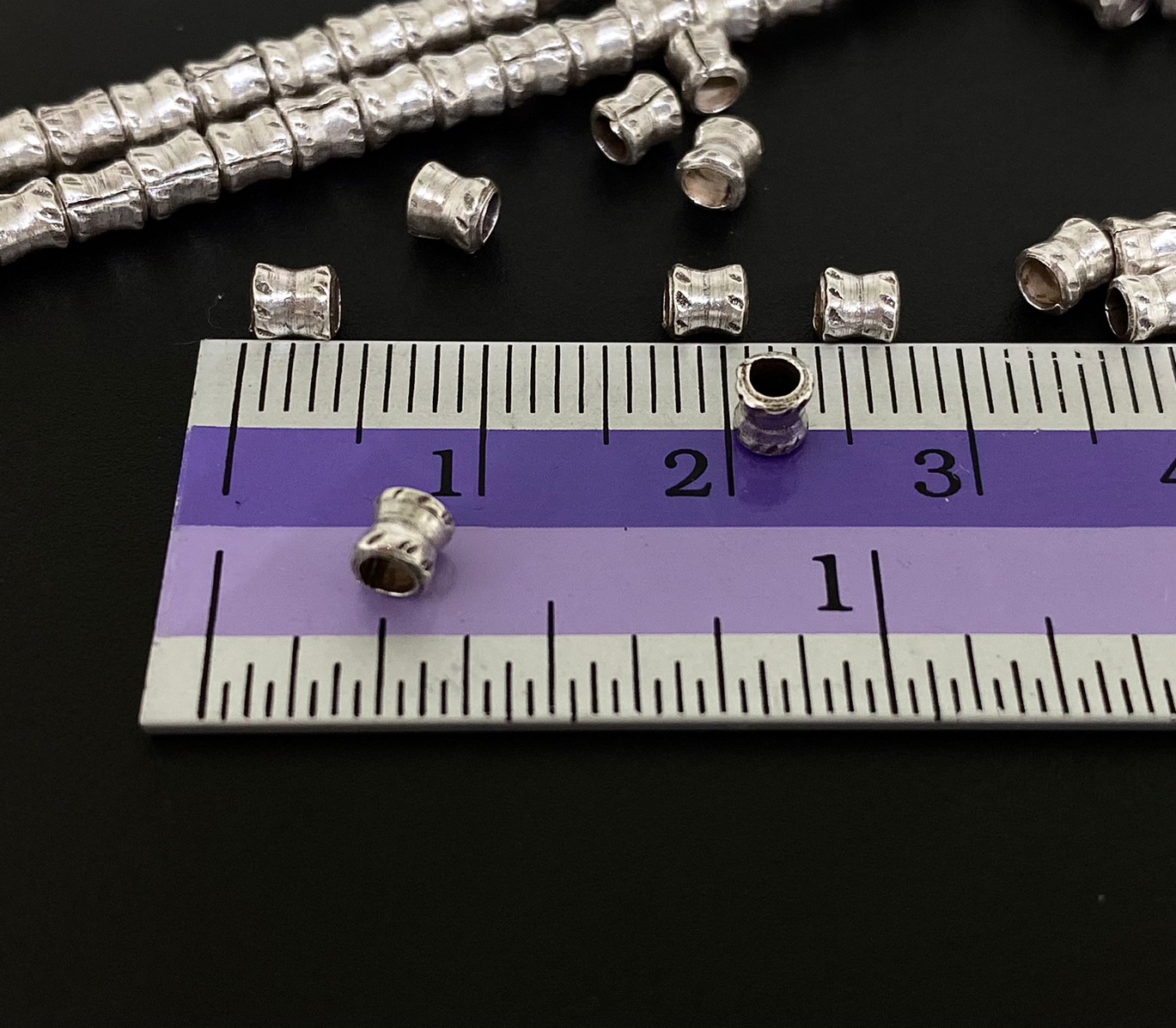 KK-014 Thai karen hill tribe silver 40 fancy print mini hourglass bead