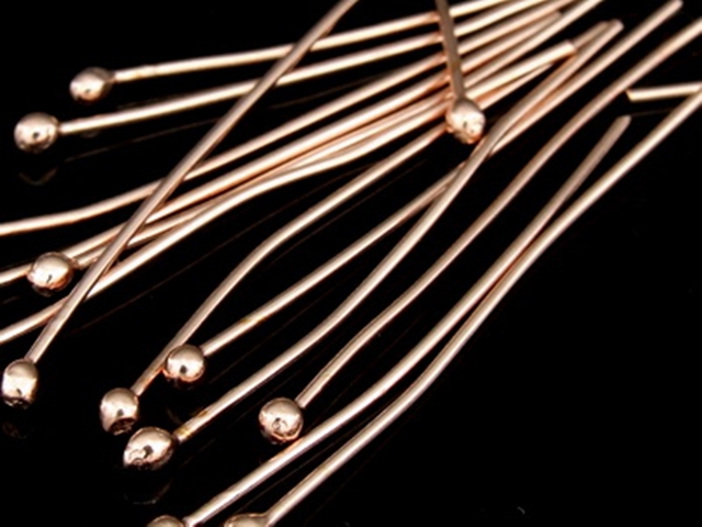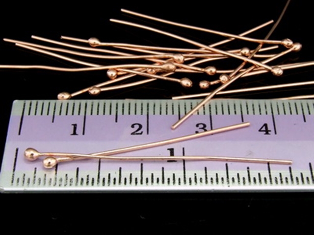 KZ-110 24K Rose gold vermeil thai karen hill tribe handmade silver 20 round ball headpin 30mm.(24ga.wire)