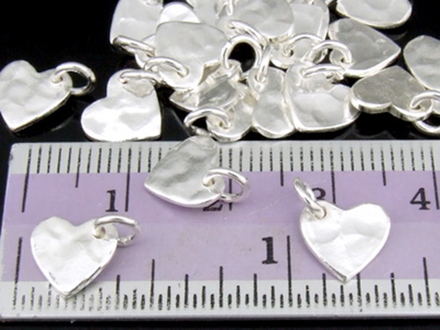3KH-108 Thai karen hill tribe handmade silver 10 small hammered heart shape charm