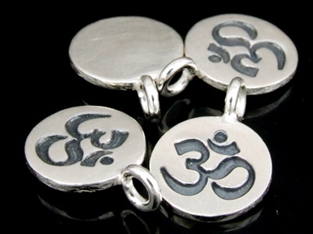 7KH-010 Thai karen hill tribe handmade silver 4 om symbol disc charm