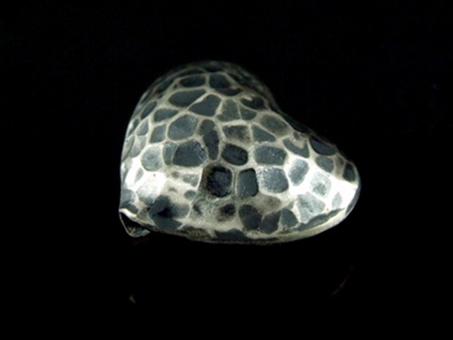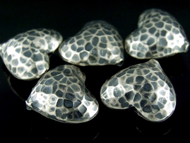 8KH-010 Thai karen hill tribe handmade silver 2 black&white hammered puffy heart shape bead